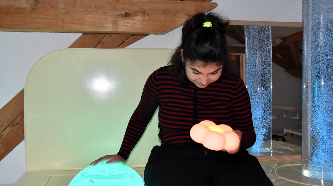 Erleben mit allen Sinnen! Basierend auf Freiwilligkeit wird die Wahrnehmung aktiviert, um so die verbale wie die nonverbale Kommunikation zu fördern. Dadurch können die von uns begleiteten Personen ihr Befinden besser ausdrücken, was zur Förderung des Wohlbefindens führt. Mittels verschiedener Hilfsmittel wie Lichteffekte, Düfte, Geräusche, Berührungen und spüren von unterschiedlichen Materialien können die Sinne angeregt werden.