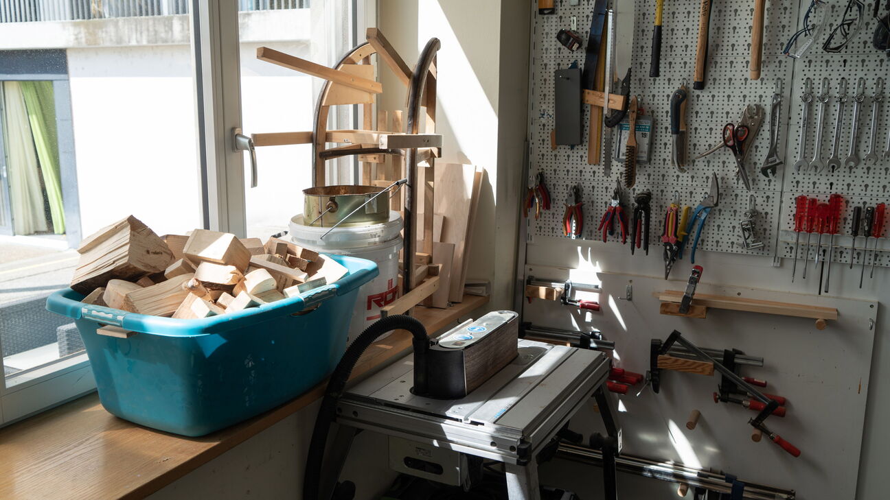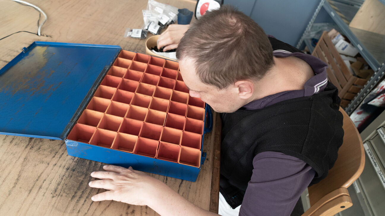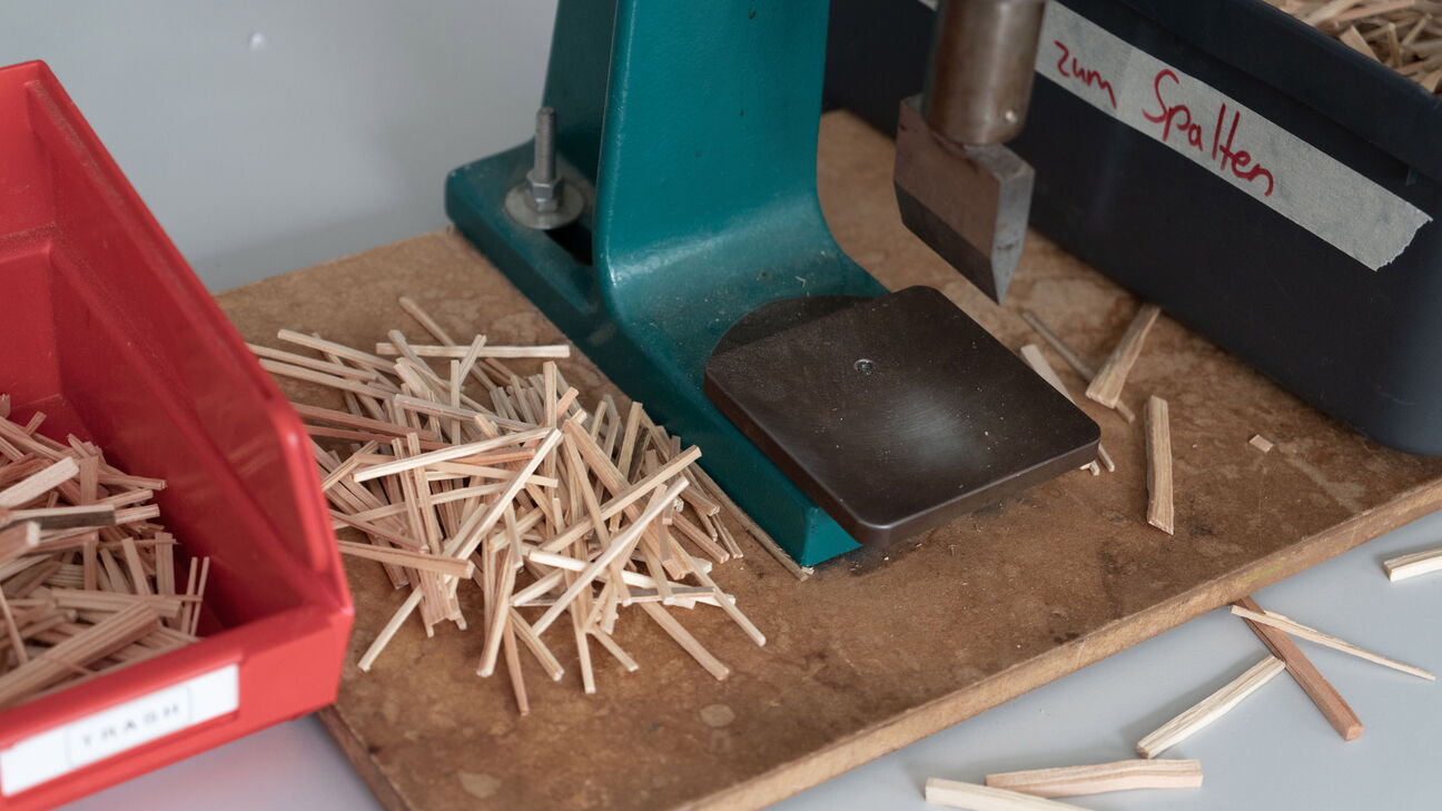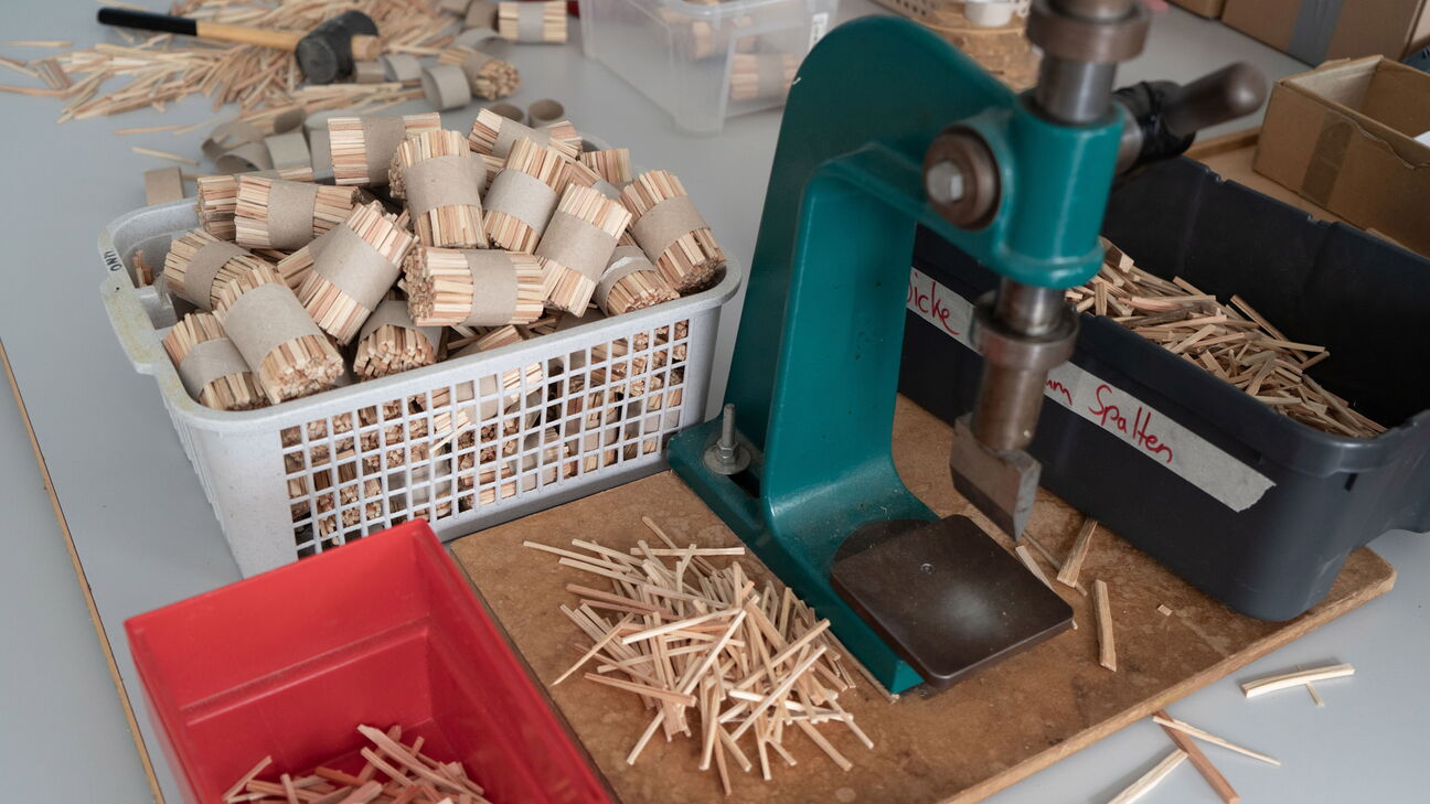 Sägen, Bohren und Lärmen! Neben unseren Verkaufsschlagern, den kleinen Finnenkerzen und den Licht-Holzruggeln, widmen wir uns im Holzatelier das gesamte Jahr dem Sägen und Spalten von Holz für die Herstellung von K-Lumet. Seit Jahrzehnten ist auch das Verpacken von Eisenwaren für die Firma Schwab ein fester Bestandteil unseres Holzateliers.